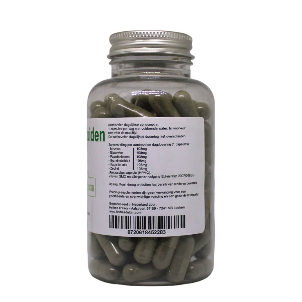 De Herbes D’elixir Jodium capsules zijn samengesteld met hoogwaardige en natuurlijke ingrediënten: Iersmos, Blaaswier, Paardenbloem, brandnetelblad, Kaoliniet en Zeoliet.
